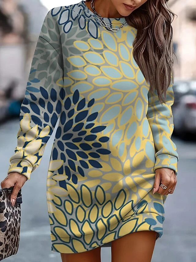 Women’s Casual Dress Sweatshirt Dress Winter Dress Floral Print Crew Neck Mini Dress Fashion Streetwear Outdoor Daily Long Sleeve Loose Fit Yellow Pink Blue Fall Winter S M L XL XXL