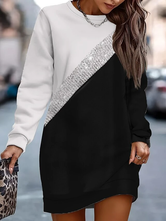 Women’s Casual Dress Sweatshirt Dress Winter Dress Geometric Color Block Print Crew Neck Mini Dress Fashion Streetwear Outdoor Daily Long Sleeve Loose Fit Pink Blue Apricot Fall Winter S M L XL XXL