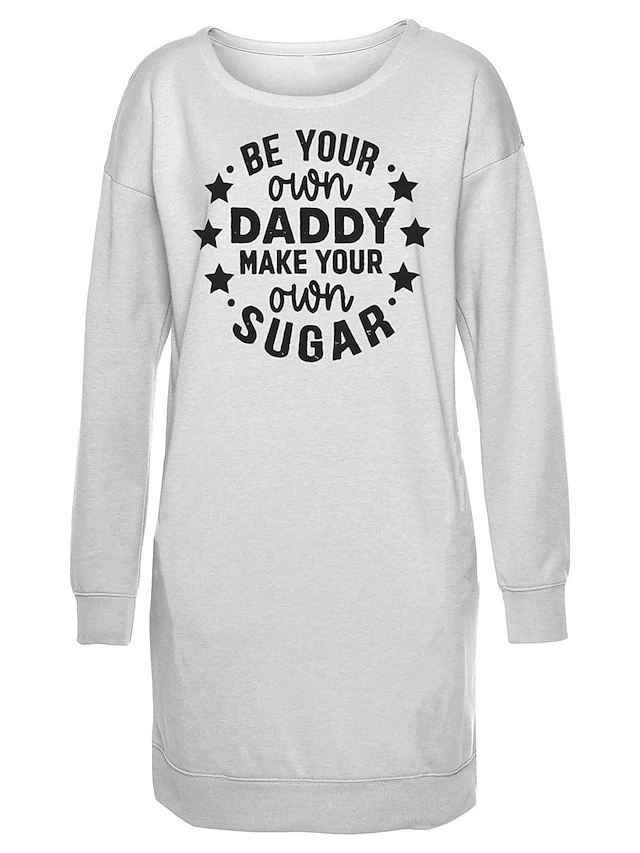 Women’s Casual Dress Sweatshirt Dress Winter Dress Letter Pocket Print Crew Neck Mini Dress Fashion Streetwear Outdoor Daily Long Sleeve Loose Fit White Gray Fall Winter S M L XL XXL
