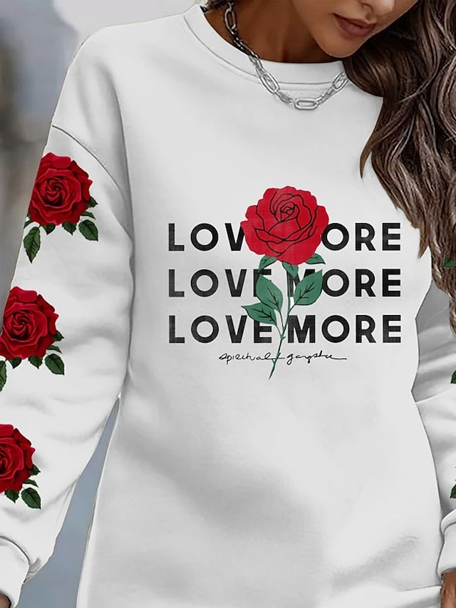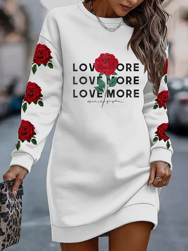 Women’s Casual Dress Sweatshirt Dress Winter Dress Letter Rose Print Crew Neck Mini Dress Fashion Streetwear Outdoor Daily Long Sleeve Loose Fit White Fall Winter S M L XL XXL