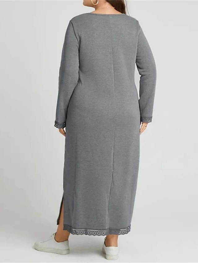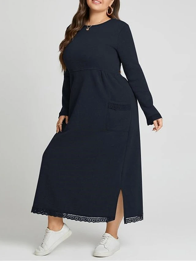 Women’s Casual Dress Sweatshirt Dress Winter Dress Long Dress Maxi Dress Ruched Pocket Outdoor Daily Going Out Fashion Streetwear Crew Neck Long Sleeve 2023 Loose Fit Black Wine Purple Color S M L XL