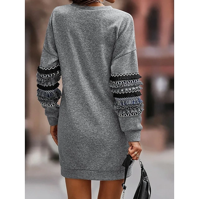 Women’s Casual Dress Sweatshirt Dress Winter Dress Mini Dress Ruched Patchwork Street Daily Holiday Fashion Streetwear Crew Neck Long Sleeve 2023 Loose Fit Grey Color S M L XL Size
