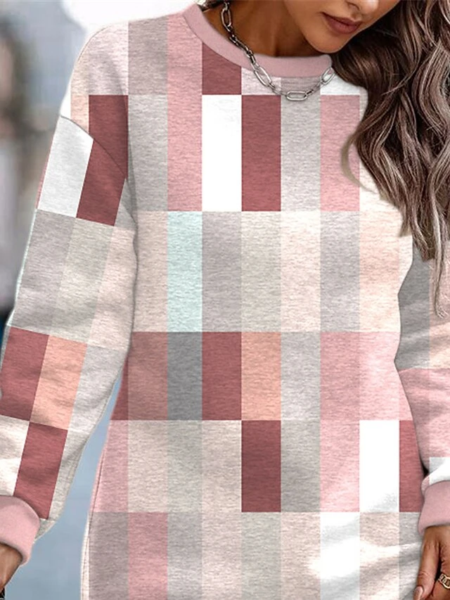 Women’s Casual Dress Sweatshirt Dress Winter Dress Plaid Print Crew Neck Mini Dress Fashion Streetwear Outdoor Daily Long Sleeve Loose Fit Pink Fall Winter S M L XL XXL