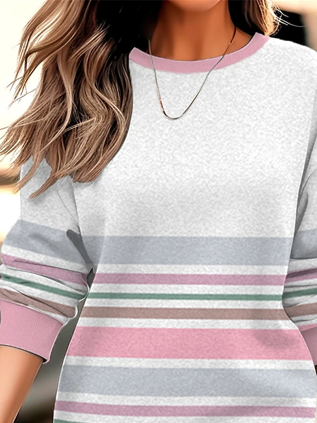 Women’s Casual Dress Sweatshirt Dress Winter Dress Stripe Print Crew Neck Mini Dress Fashion Streetwear Outdoor Daily Long Sleeve Loose Fit Pink Fall Winter S M L XL XXL