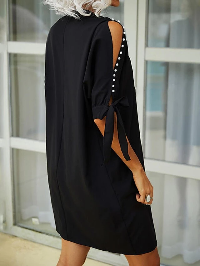 Women’s Casual Dress Swing Dress Knee Length Dress Black Dark Blue Long Sleeve Pure Color Summer Spring Casual Winter Dress Fall Dress Loose Fit 2023 S M L XL XXL
