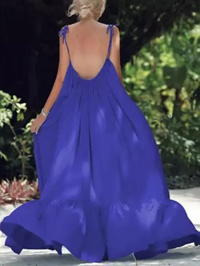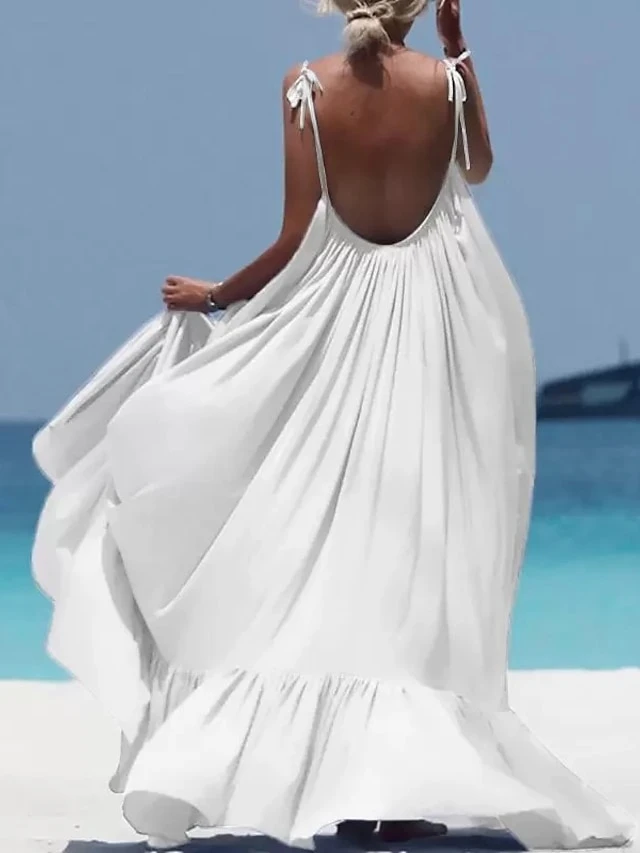 Women’s Casual Dress Swing Dress Long Dress Maxi Dress Black White Yellow Sleeveless Pure Color Backless Summer Spring Fall Spaghetti Strap Fashion Vacation Loose Fit 2023 S M L XL 2XL 3XL 4XL 5XL