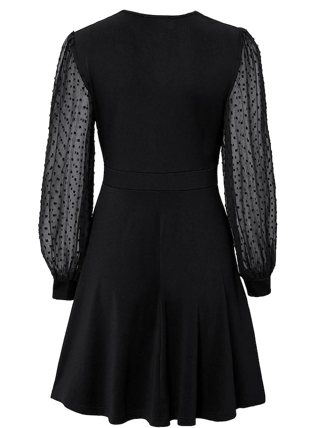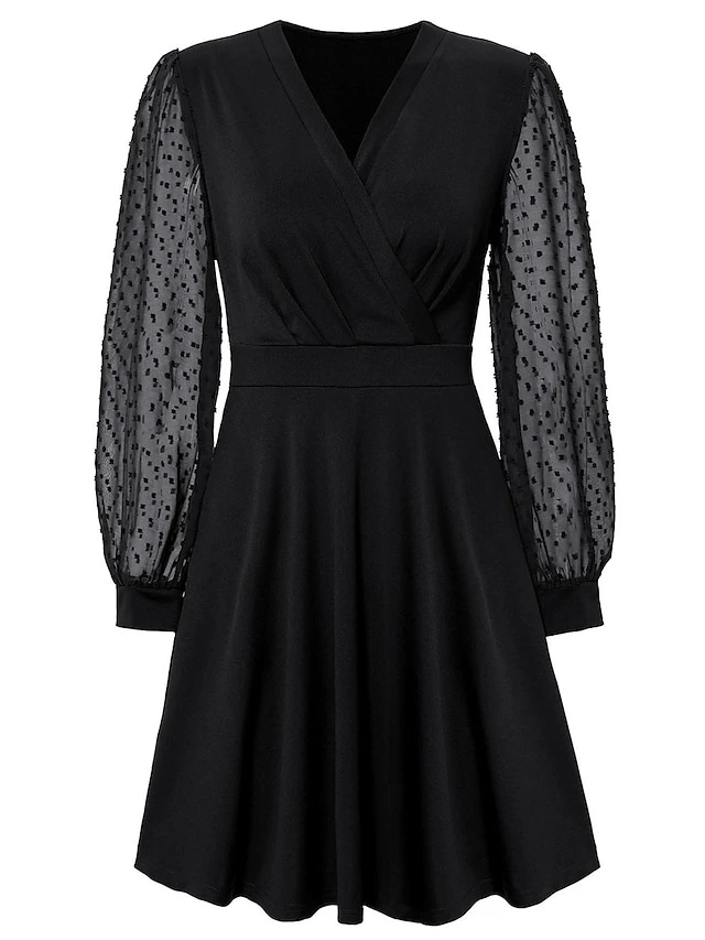 Women’s Casual Dress Swing Dress Plain Dress Midi Dress Mesh Daily Date Going Out Fashion Basic V Neck Long Sleeve 2023 Slim Black Brown Green Color S M L XL Size