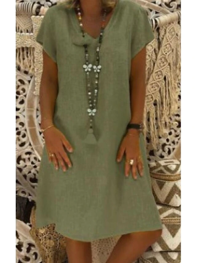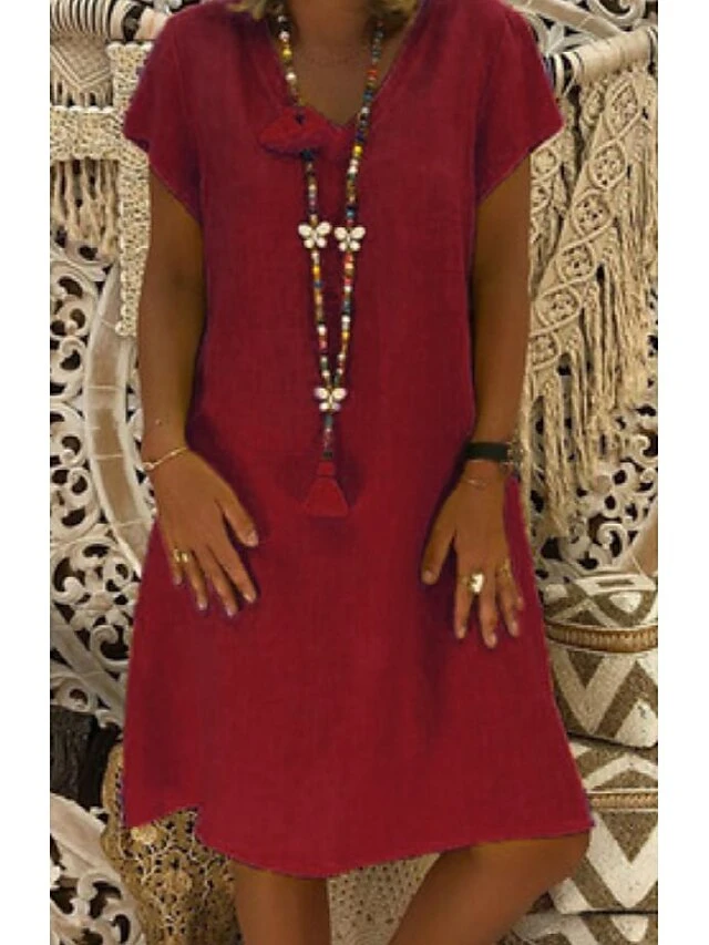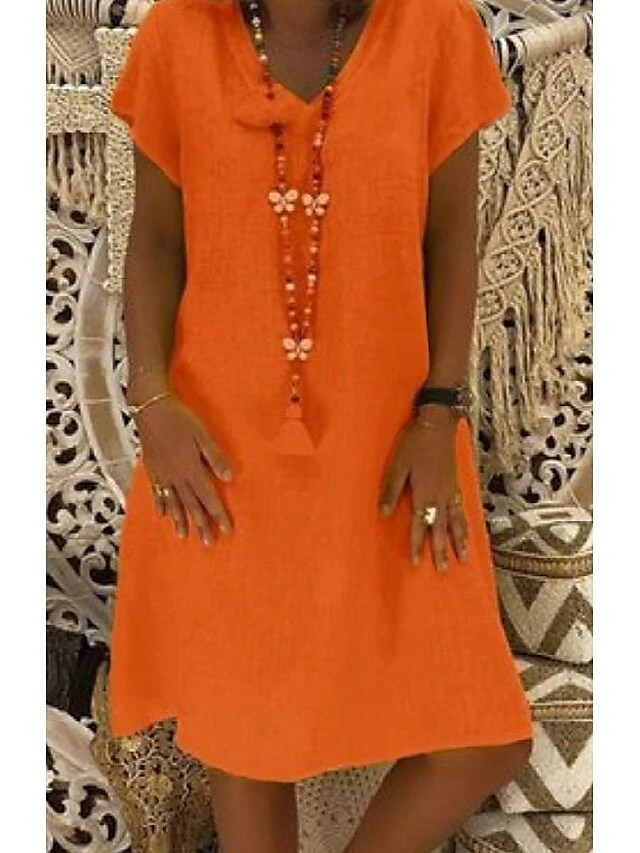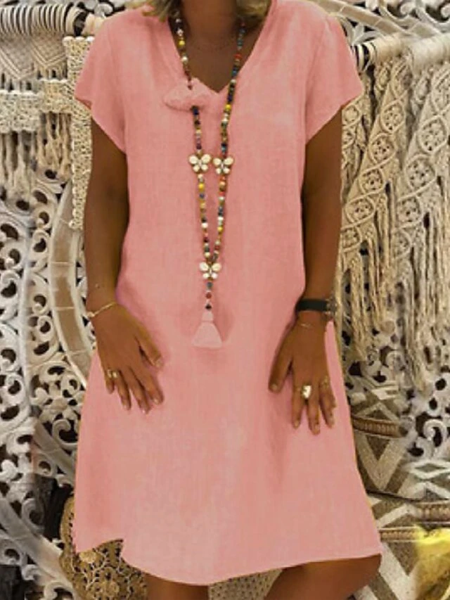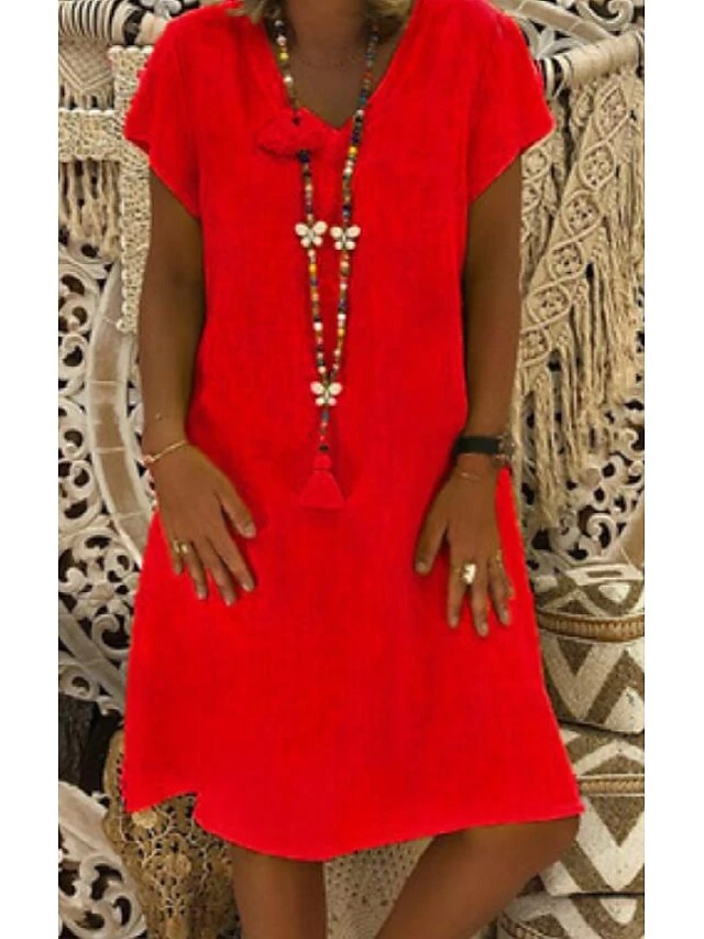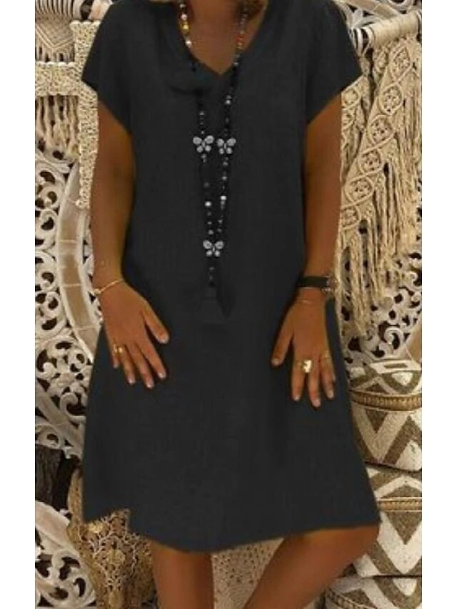 Women’s Casual Dress T Shirt Dress Tee Dress Shift Dress Midi Dress Black Yellow Pink Short Sleeve Pure Color Patchwork Summer Spring V Neck Basic Vacation Summer Dress Spring Dress Loose Fit 2022 S