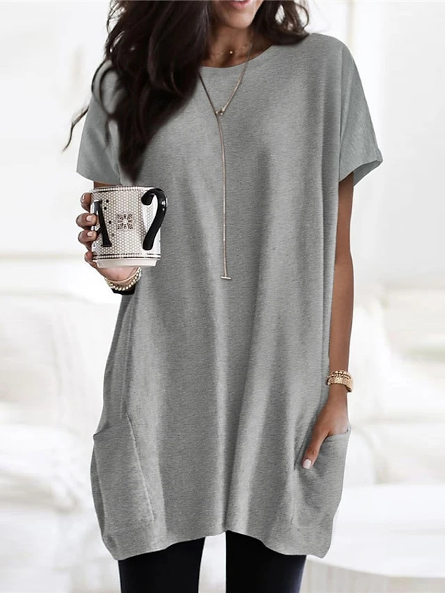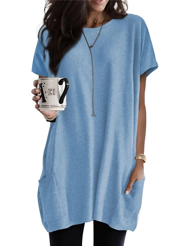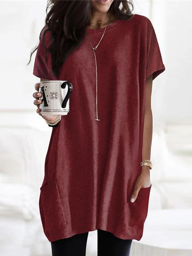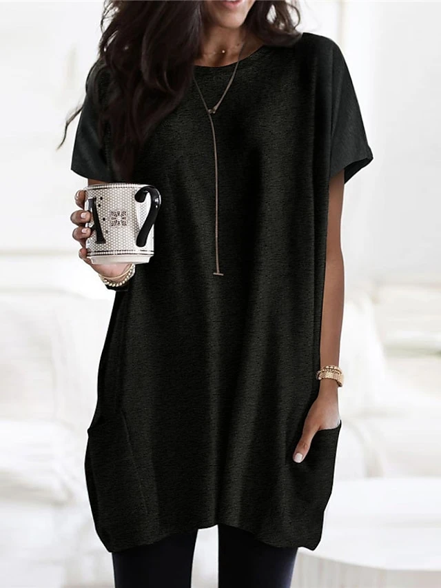 Women’s Casual Dress T Shirt Dress Tee Dress Shift Dress Mini Dress Black White Pink Short Sleeve Pure Color Pocket Summer Spring Crew Neck Classic Loose Fit 2023 S M L XL XXL