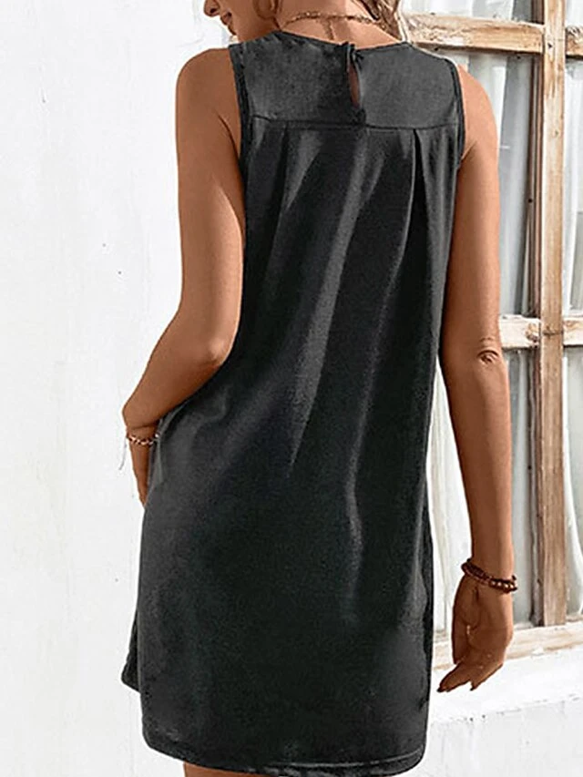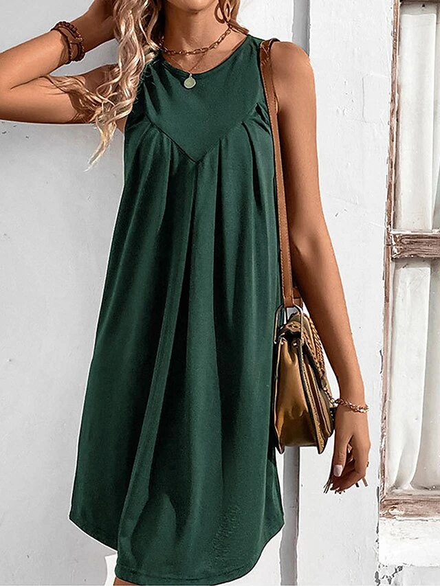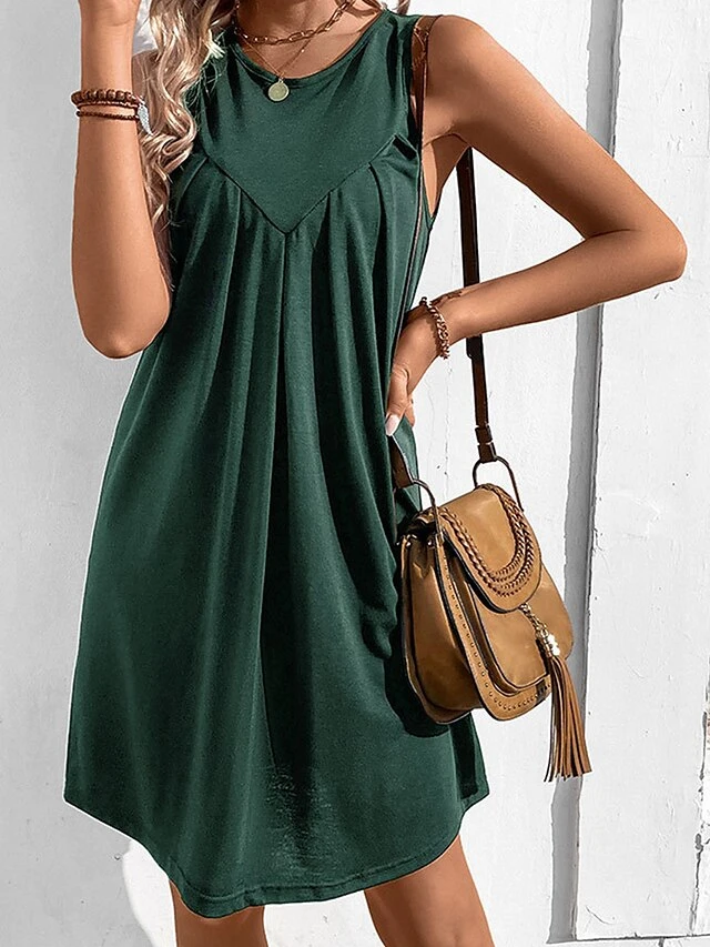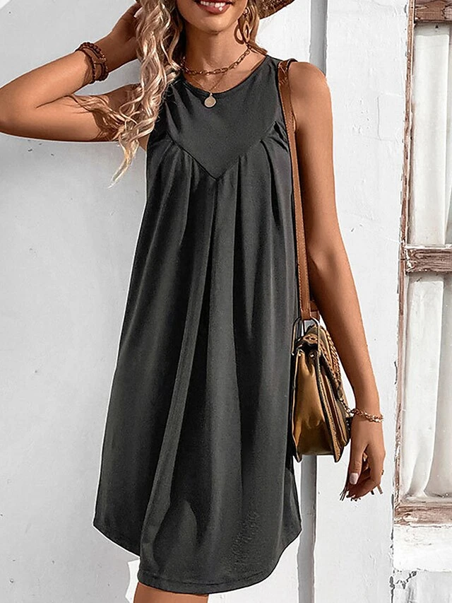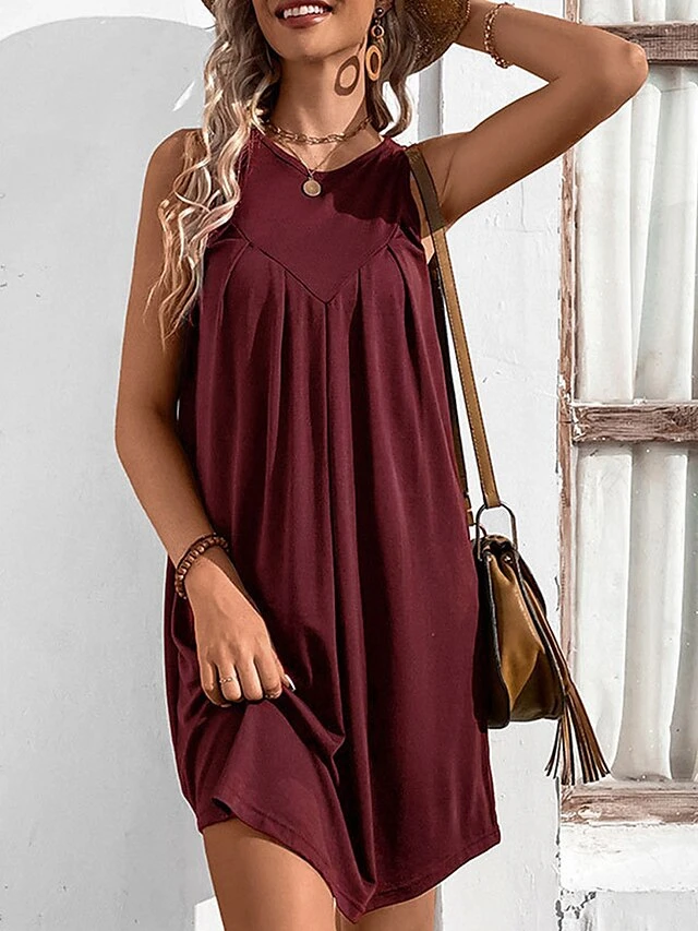 Women’s Casual Dress Tank Dress Summer Dress Mini Dress Ruched Outdoor Daily Date Fashion Streetwear Crew Neck Sleeveless 2023 Regular Fit Black Wine Navy Blue Color S M L XL Size