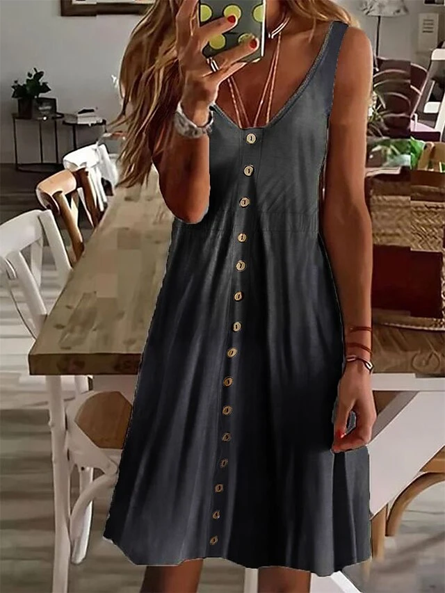 Women’s Casual Dress Tank Dress Summer Dress Plain Ruched Button Strap Midi Dress Fashion Streetwear Outdoor Street Sleeveless Regular Fit Yellow Pink Wine Summer Spring S M L XL