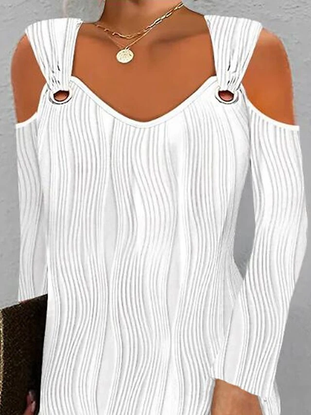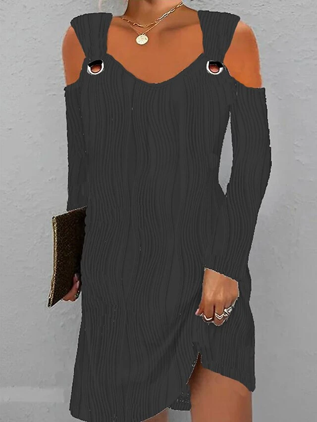 Women’s Casual Dress White Dress Summer Dress Mini Dress Cold Shoulder Daily Date Going Out Fashion Basic Strap Long Sleeve 2023 Regular Fit Black White Color S M L XL Size