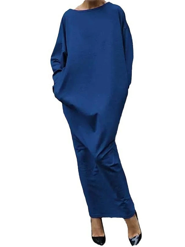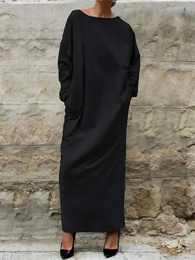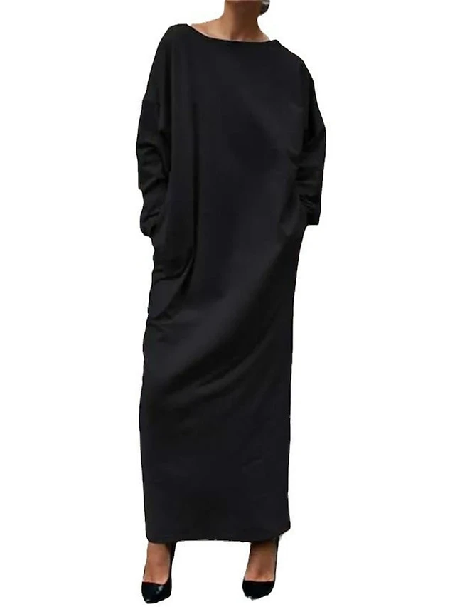 Women’s Casual Dress Winter Dress Black Dress Long Dress Maxi Dress Pocket Outdoor Street Daily Active Fashion Crew Neck Long Sleeve 2023 Loose Fit Black Wine Dark Blue Color S M L XL XXL Size