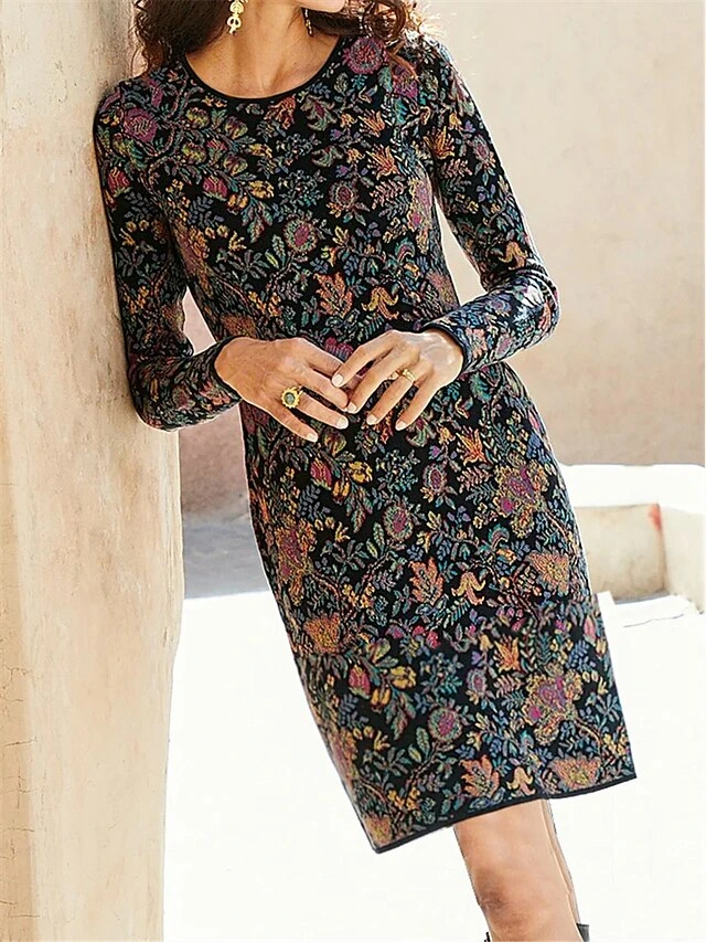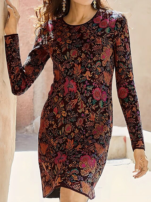 Women’s Casual Dress Winter Dress Sweatshirt Dress Floral Print Crew Neck Mini Dress Fashion Streetwear Outdoor Daily Long Sleeve Loose Fit Red Royal Blue Blue Fall Winter S M L XL XXL