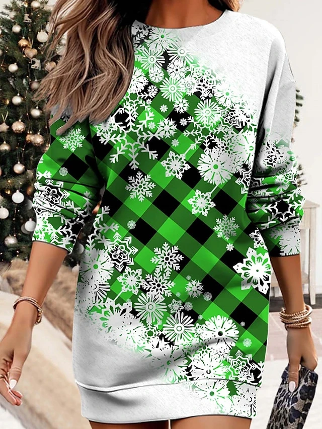 Women’s Christmas Casual Dress Sweatshirt Dress Mini Dress Warm Fashion Outdoor Vacation Crew Neck Print Geometric Print Loose Fit Red Blue Purple S M L XL XXL