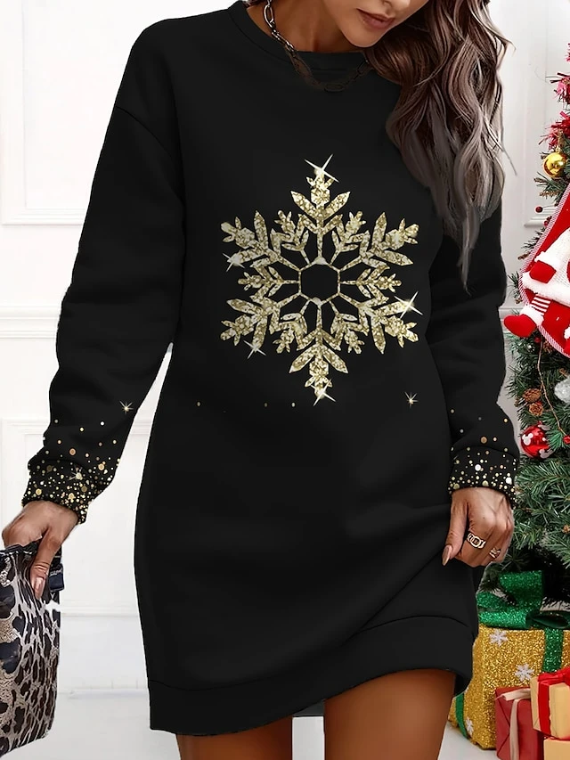 Women’s Christmas Casual Dress Sweatshirt Dress Mini Dress Warm Fashion OutdoorVacation Crew Neck Print Snowman Loose Fit Black Yellow Blue S M L XL XXL