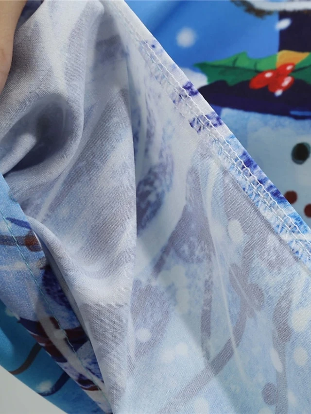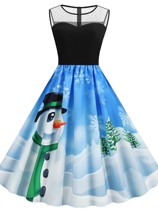 Women’s Christmas Casual Dress Swing Dress Midi Dress Blue Royal Blue Dark Blue Light Blue Sleeveless Santa Claus Snowman Mesh Print Winter Fall Crew Neck Vacation Vintage 2022 S M L XL XXL