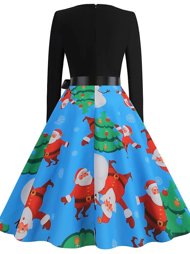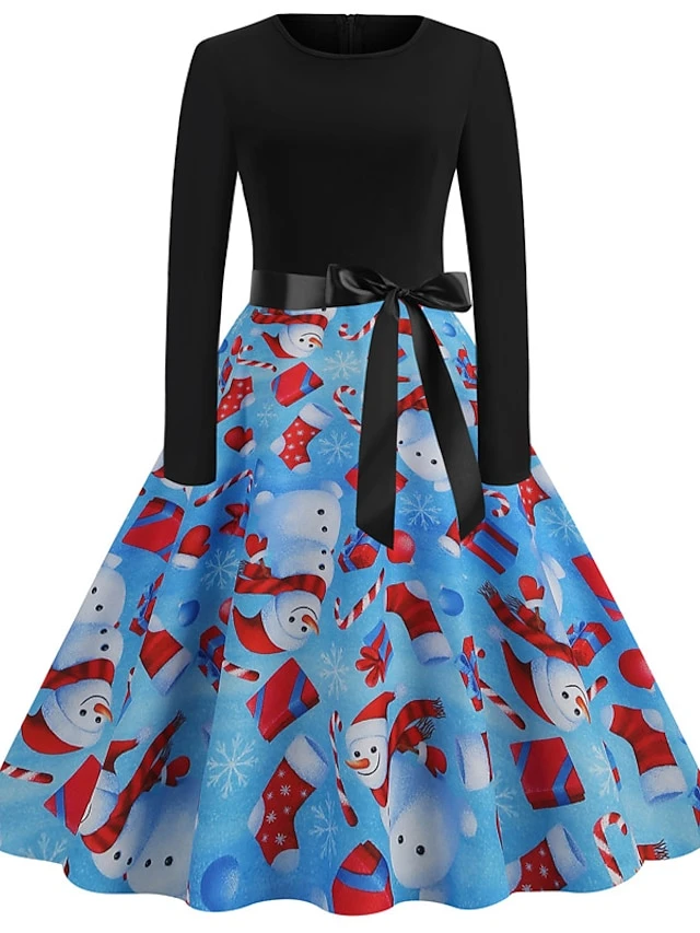Women’s Christmas Casual Dress Swing Dress Vintage Dress Midi Dress Green Blue Royal Blue Long Sleeve Color Block Bow Winter Fall Autumn V Neck Slim 2022 S M L XL XXL 3XL
