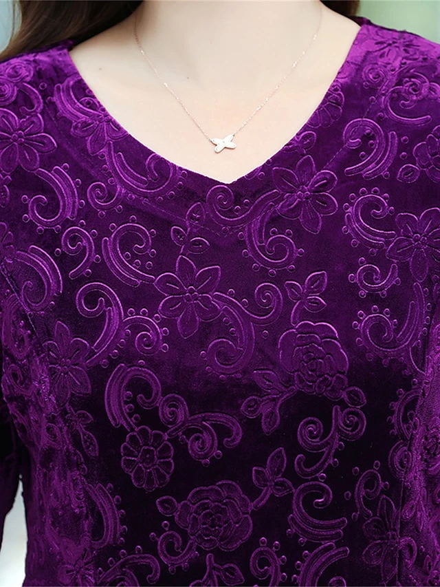Women’s Christmas Dress Casual Dress Velvet Dress Midi Dress Pocket Outdoor Christmas Street Fashion Elegant V Neck Long Sleeve 2023 Loose Fit Black Wine Blue Color XL XXL 3XL 4XL 5XL Size