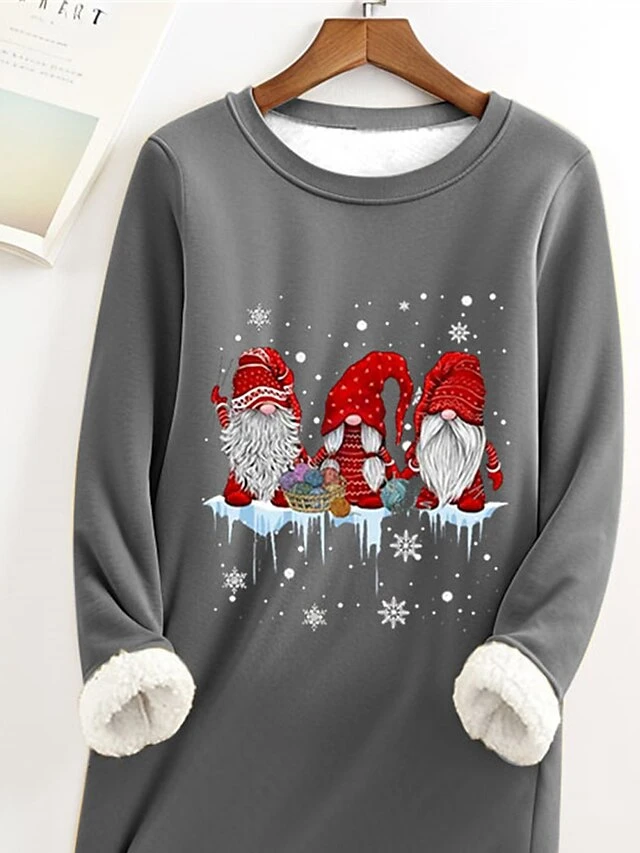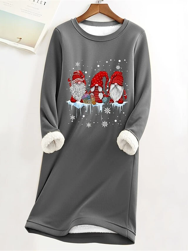 Women’s Christmas Dress Sweatshirt Dress Mini Dress Warm Fashion Outdoor Christmas Vacation Crew Neck Print Santa Claus Loose Fit Gray S M L XL XXL