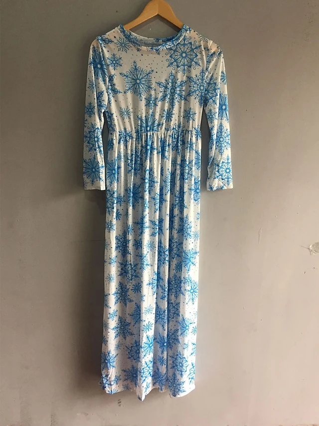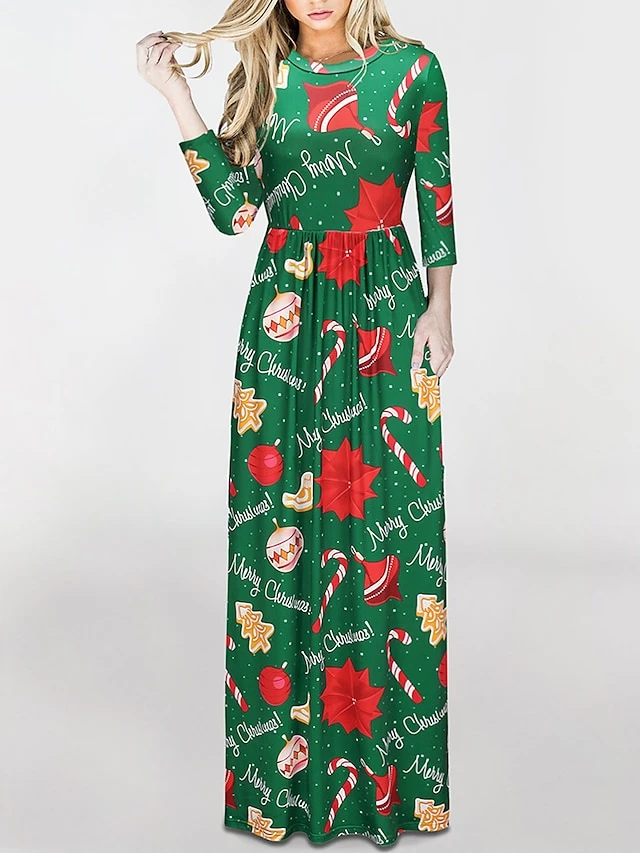 Women‘s Christmas Holiday Casual Vintage Dress Long Dress Maxi Dress Party Ruched Patchwork Santa Claus Crew Neck Long Sleeve Regular Fit Fall Winter 2023 Black White S M L XL