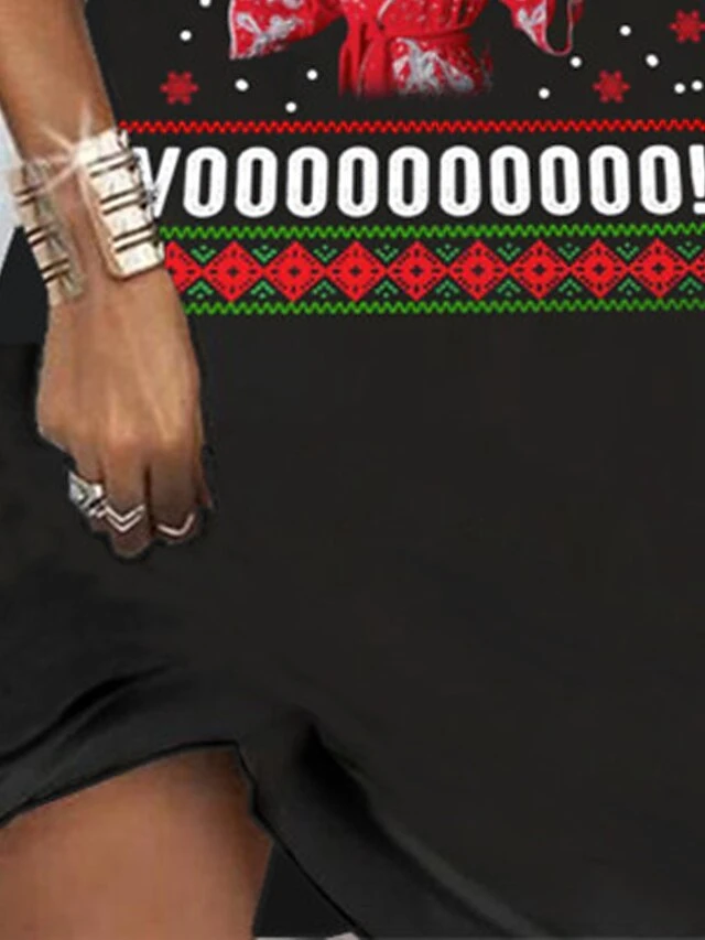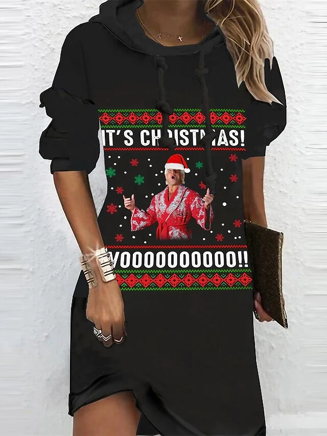 Women’s Christmas Hoodie Dress Shift Dress Mini Dress Black Long Sleeve Letter Print Winter Fall Autumn Hooded Fashion Christmas Daily 2022 S M L XL XXL 3XL