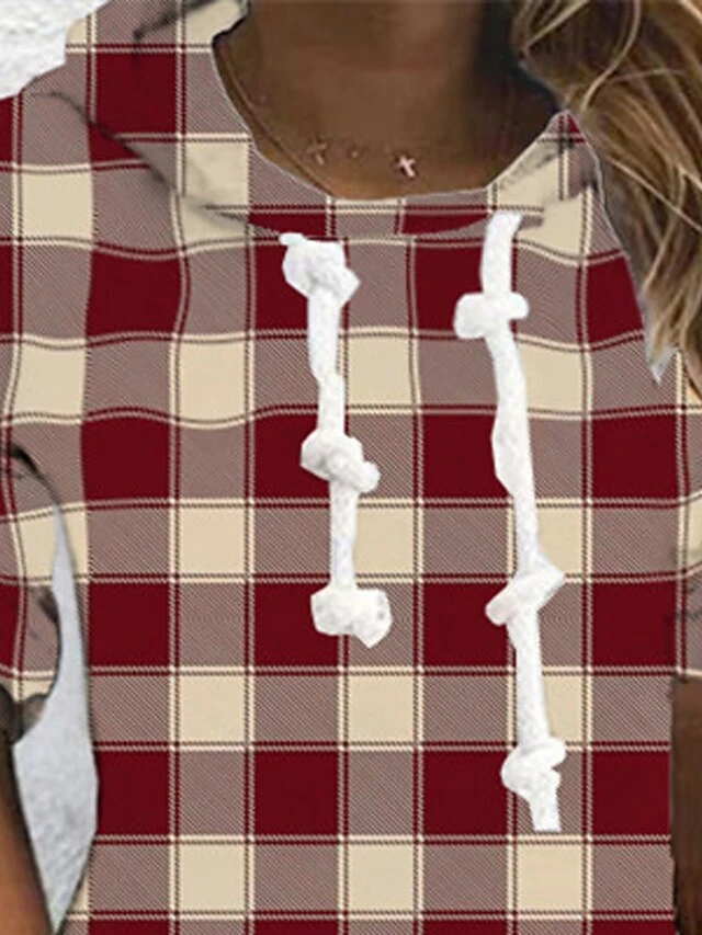 Women’s Christmas Hoodie Dress Shift Dress Mini Dress Red Long Sleeve Plaid Print Winter Fall Autumn Hooded Fashion Christmas Daily 2022 S M L XL XXL 3XL