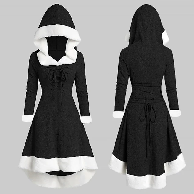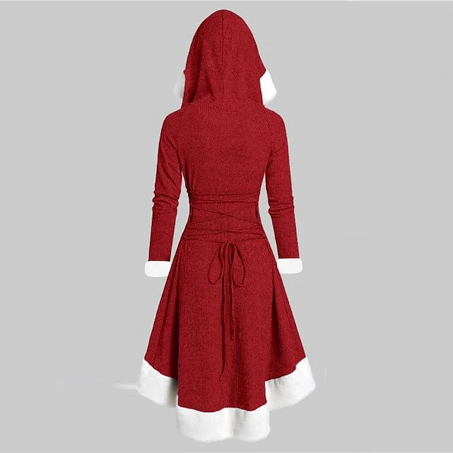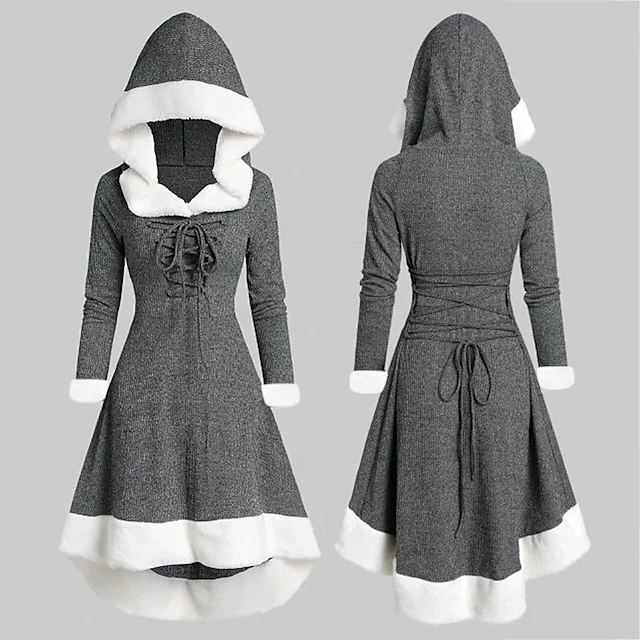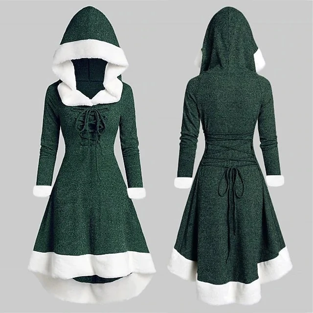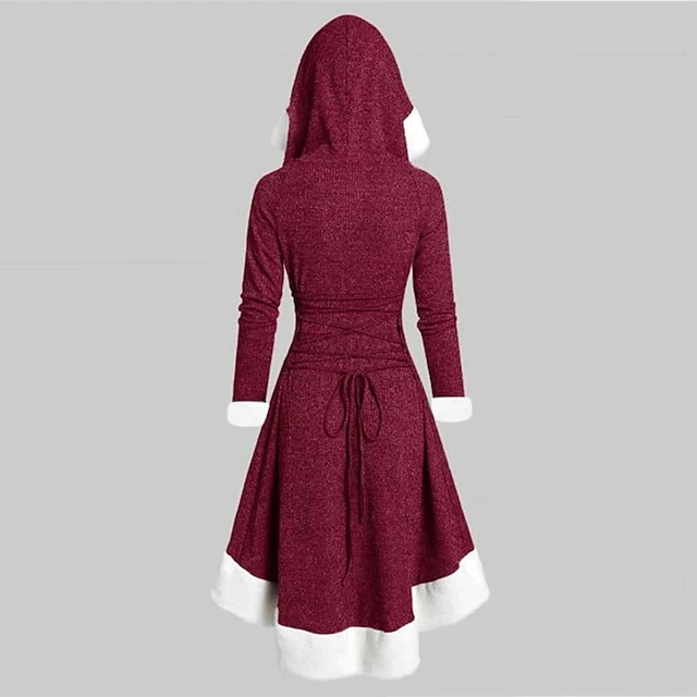 Women’s Christmas Hoodie Dress Vintage Dress Midi Dress Green Black Wine Red Gray Long Sleeve Pure Color Patchwork Winter Fall Hooded Vacation Vintage 2022 S M L XL XXL 3XL