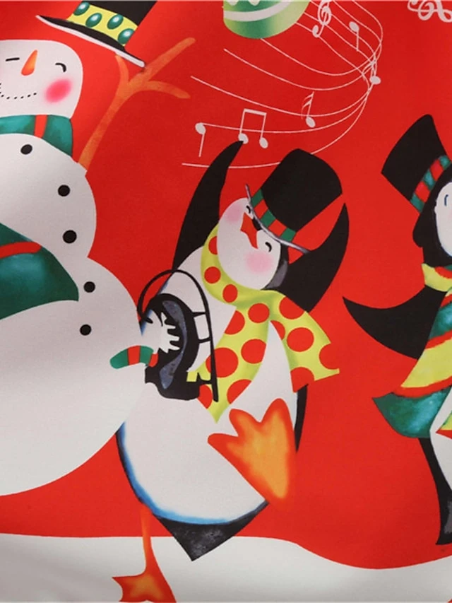 Women’s Christmas Knee Length Dress Blue Purple Wine Gray Green Black Red Light Blue Long Sleeve Print Bow Print Fall Winter Round Neck Casual Vintage2021 S M L XL XXL
