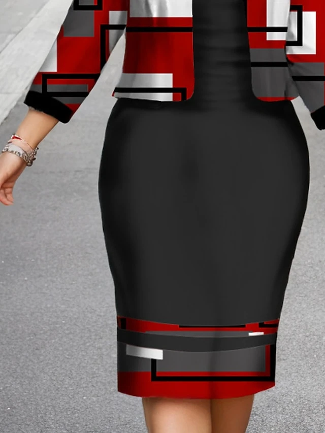 Women’s Christmas Plus Size Curve Casual Dress Dress Set Two Piece Dress Geometric Plaid Midi Dress Long Sleeve Print Crew Neck Fashion Outdoor Black Fall Winter L XL XXL 3XL 4XL