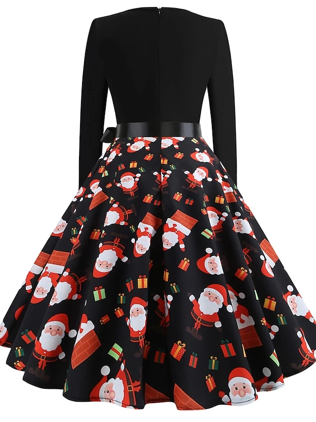 Women’s Christmas Retro 1950s Vintage Dress Midi Dress Party Ruched Bow Fruit V Neck Long Sleeve Regular Fit Fall Winter 2023 Deep Green Black S M L XL