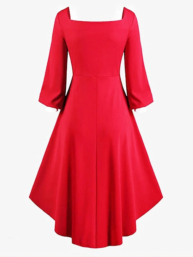 Women‘s Christmas Retro Elegant Vintage Dress Midi Dress Party Patchwork Button Plain Square Neck Long Sleeve Regular Fit Fall Winter 2023 Red S M L XL