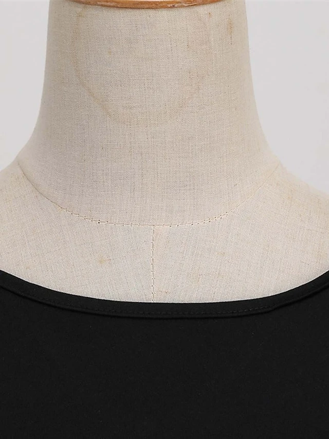 Women‘s Christmas Retro Elegant Vintage Dress Midi Dress Party Ruched Patchwork Santa Claus Crew Neck Long Sleeve Regular Fit Fall Winter 2023 Black Red S M L XL