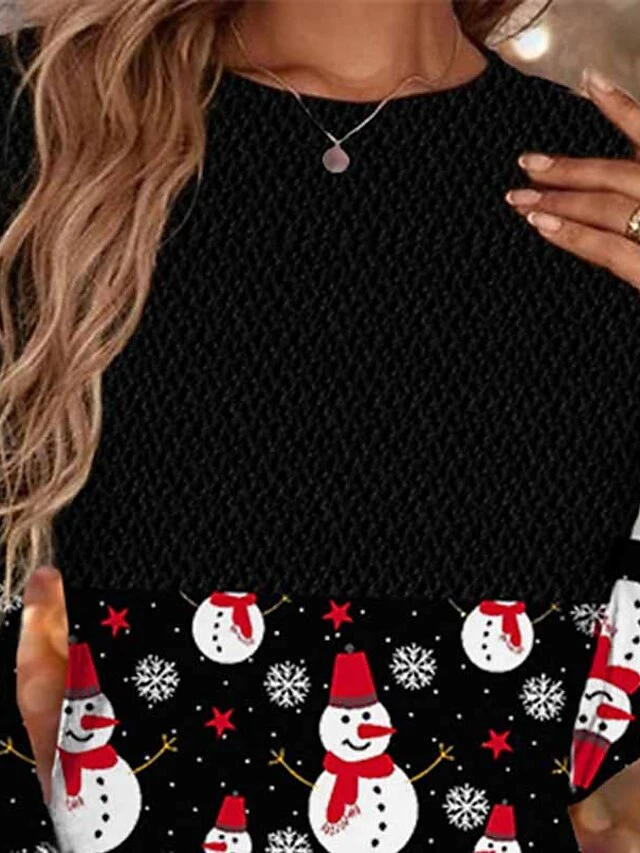 Women‘s Christmas Sweatshirt Dress Shift Dress Black Red Long Sleeve Snowman Print Winter Fall Autumn Fashion Daily Loose Fit 2022 S M L XL XXL 3XL