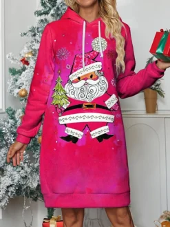 Women‘s Christmas Sweatshirt Dress Shift Dress Mini Dress Blue Pink Fuchsia Long Sleeve Plaid Pocket Winter Fall Autumn Crew Neck Loose Fit 2022 S M L XL XXL 3XL