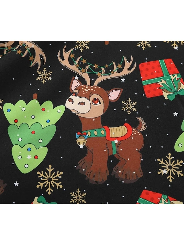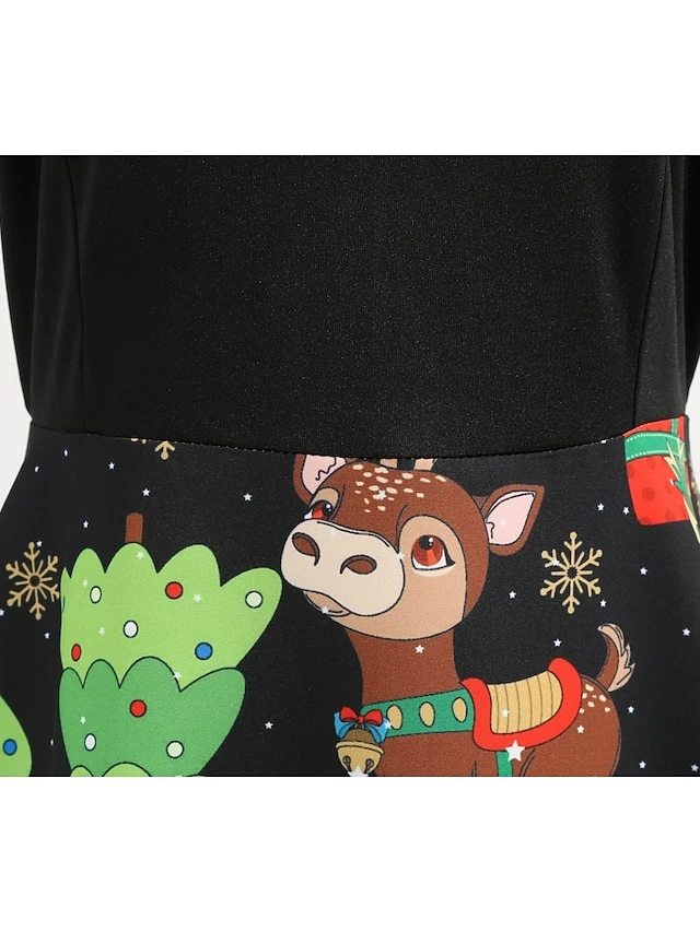 Women’s Christmas Swing Dress Knee Length Dress Black Long SleeveTree Bow Print Fall Winter Round Neck VintageParty 2021 S M L XL XXL