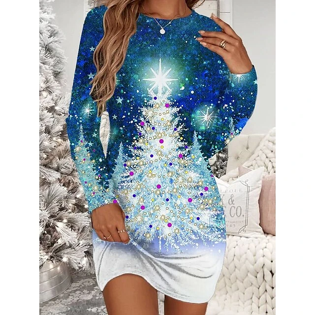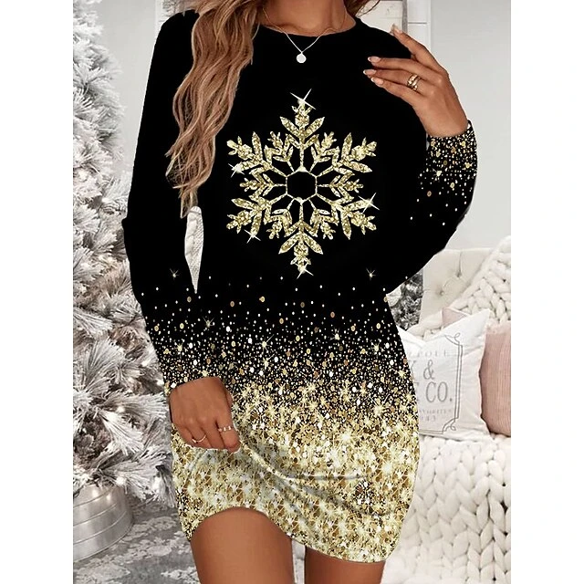 Women’s Christmas T Shirt Dress Tee Dress Bodycon Mini Dress Wine White Long Sleeve Snowman Snowflake Print Winter Fall Crew Neck Vacation Casual Fall Dress Loose Fit 2022 S M L XL XXL 3XL 4XL 5XL 6XL