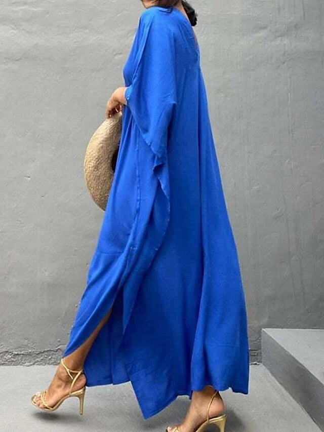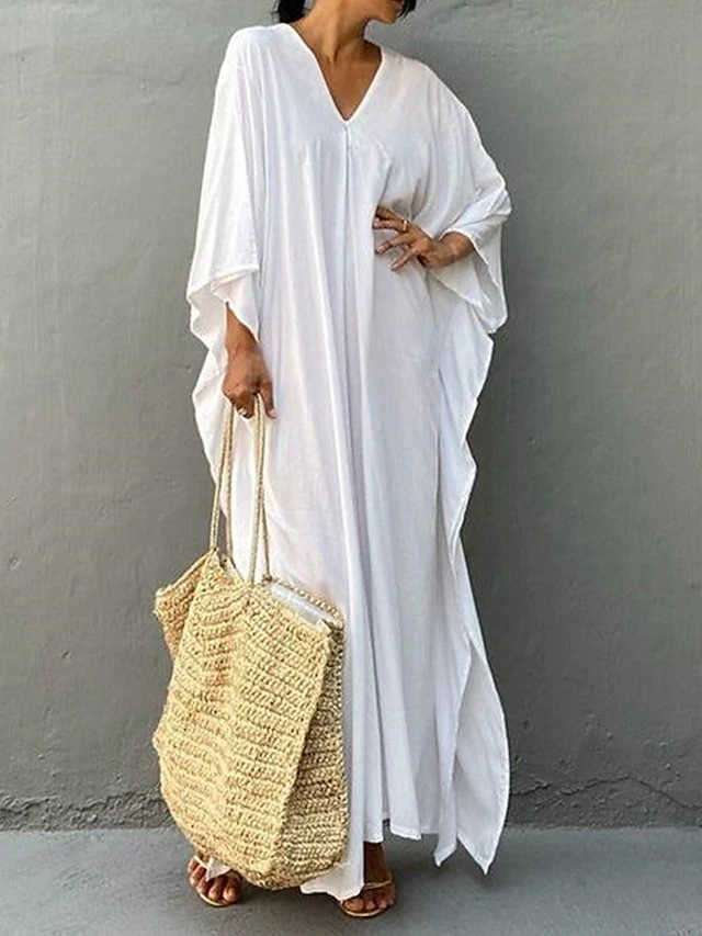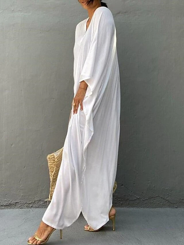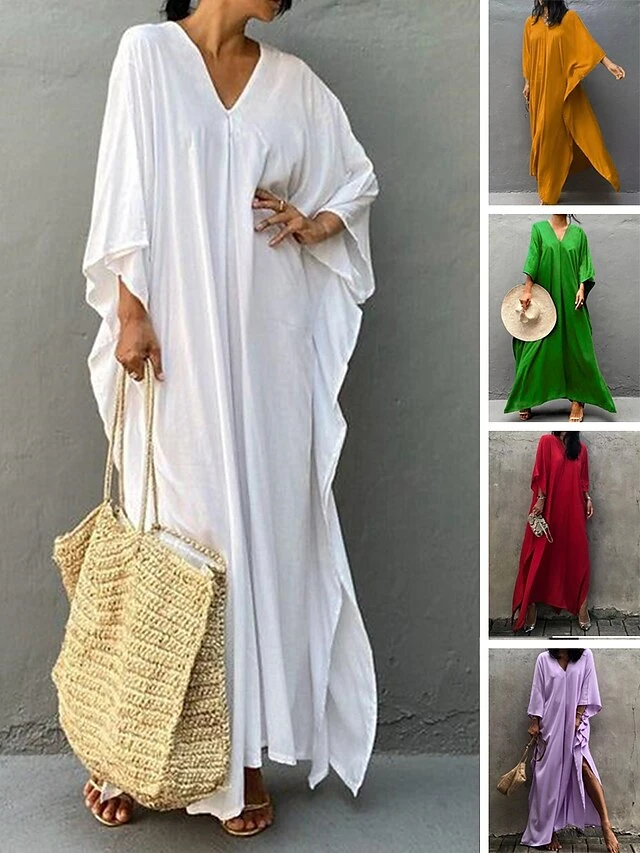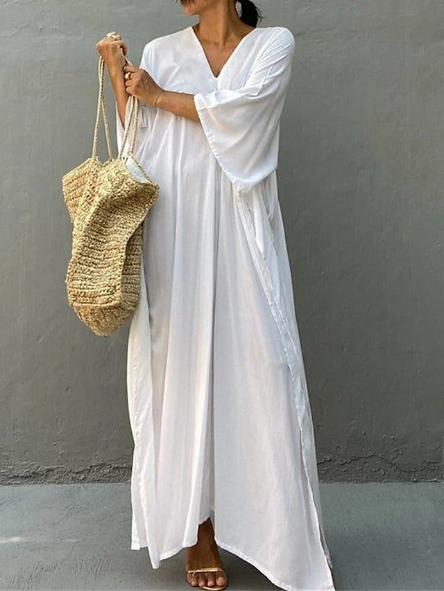 Women’s Cover Up Beach Dress Beach Wear Long Dress Maxi Dress Split Basic Casual Plain V Neck 3/4 Length Sleeve Loose Fit Outdoor Daily White Yellow 2023 Spring Summer One Size
