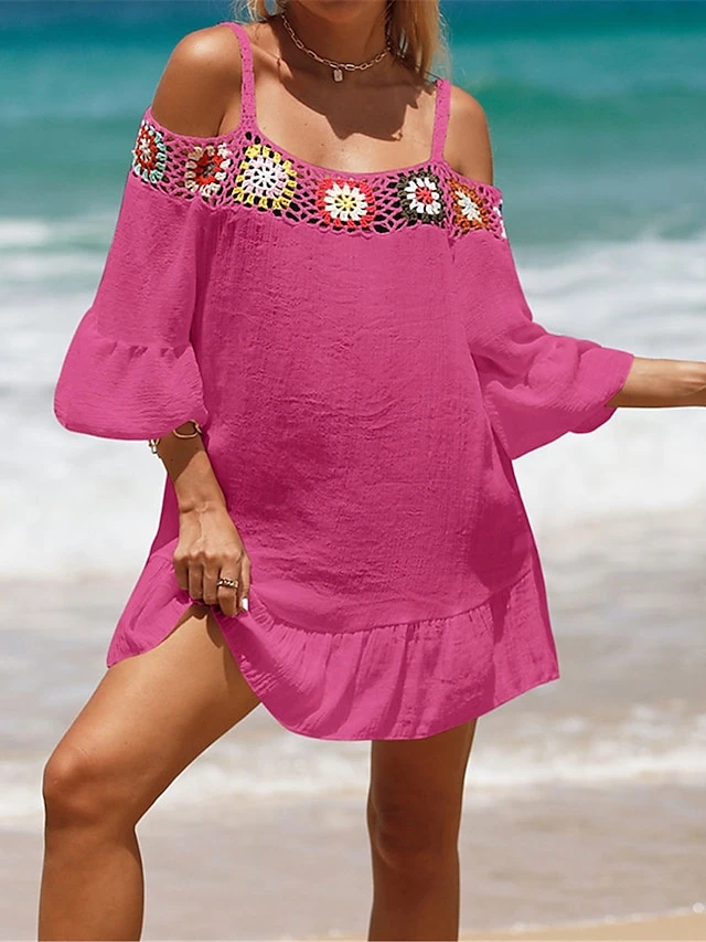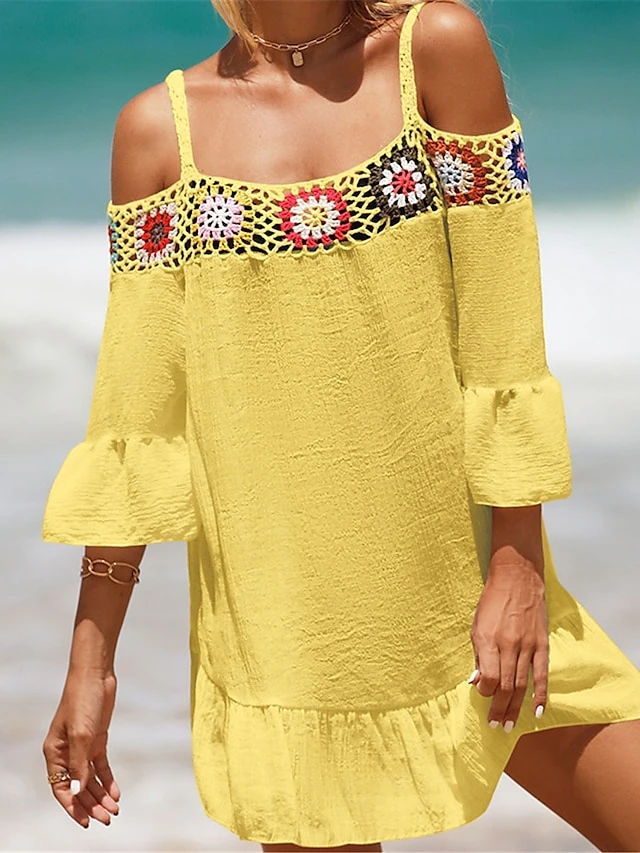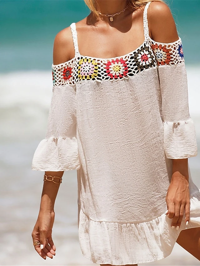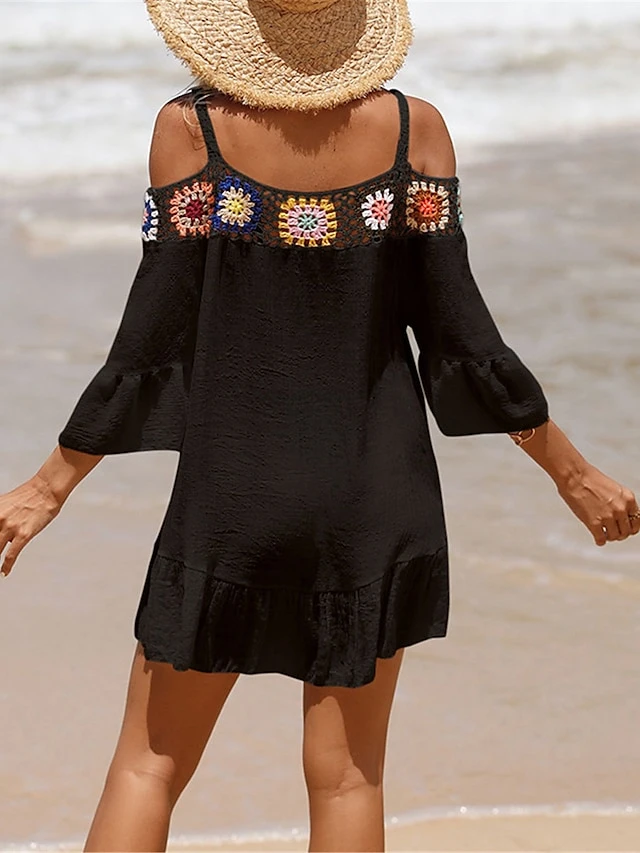 Women’s Cover Up Beach Dress Beach Wear Mini Dress Ruffle Backless Ethnic Casual Floral Spaghetti Strap 3/4 Length Sleeve Loose Fit Outdoor Daily Black White 2023 Spring Summer One Size