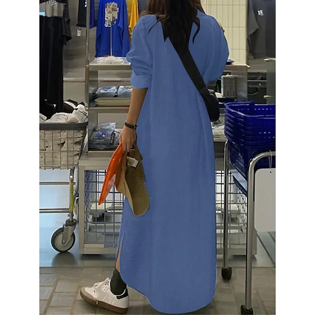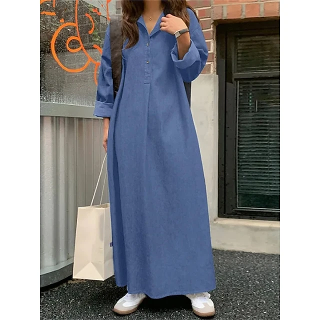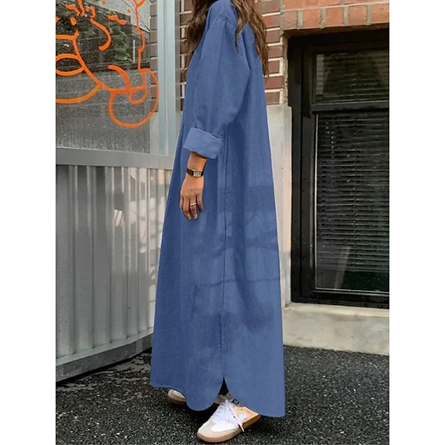 Women’s Denim Dress Casual Dress Plain Dress Long Dress Maxi Dress Button Outdoor Daily Vacation Fashion Classic Shirt Collar Long Sleeve 2023 Loose Fit Blue Dark Blue Color S M L XL XXL Size