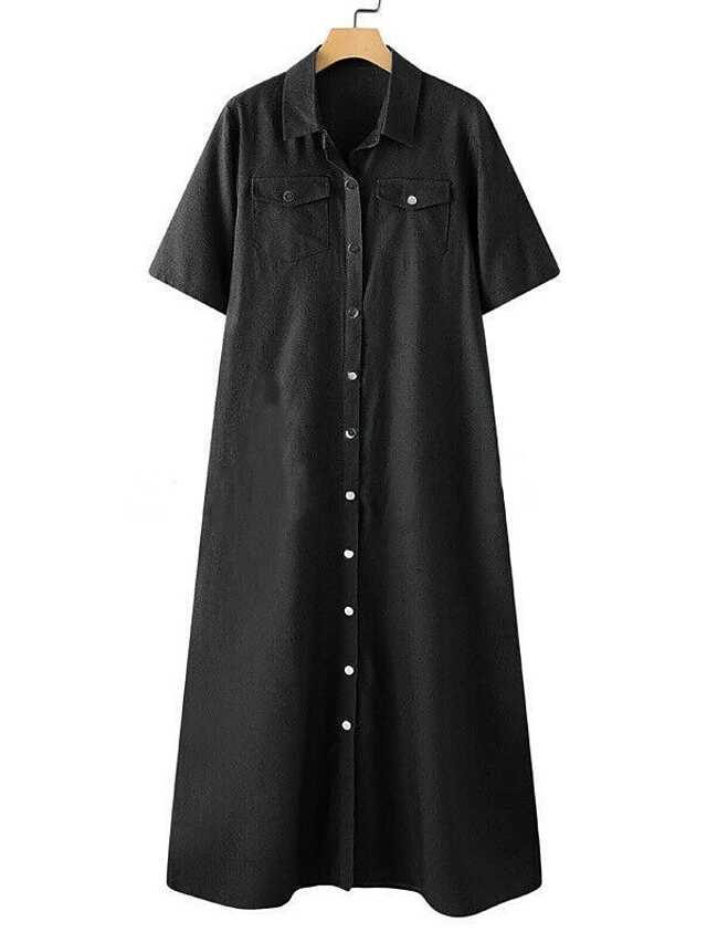 Women’s Denim Dress Shirt Dress Shift Dress Maxi Long Dress Outdoor Vacation Denim Elegant Classic Shirt Collar Button Split Half Sleeve Summer Spring 2023 Regular Fit Black Navy Blue Light Blue Pure