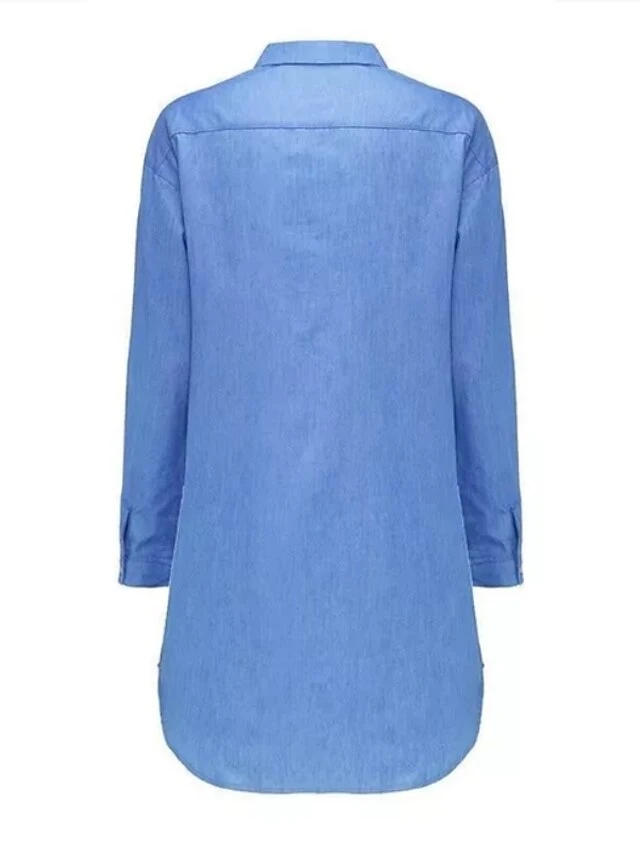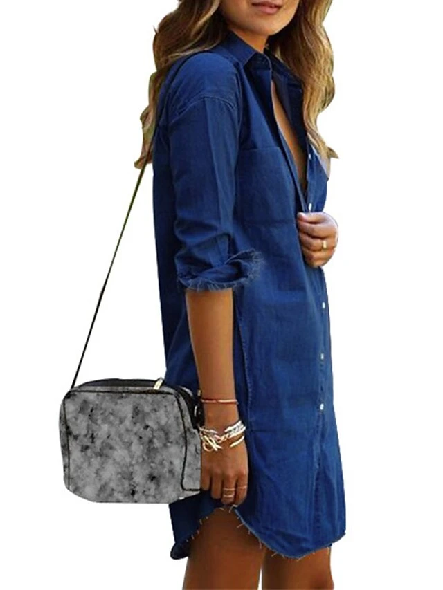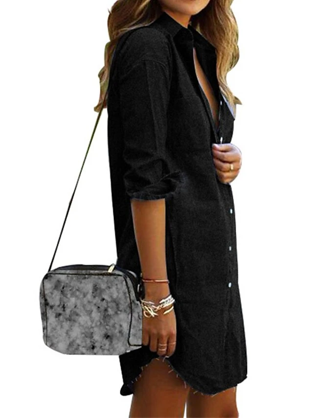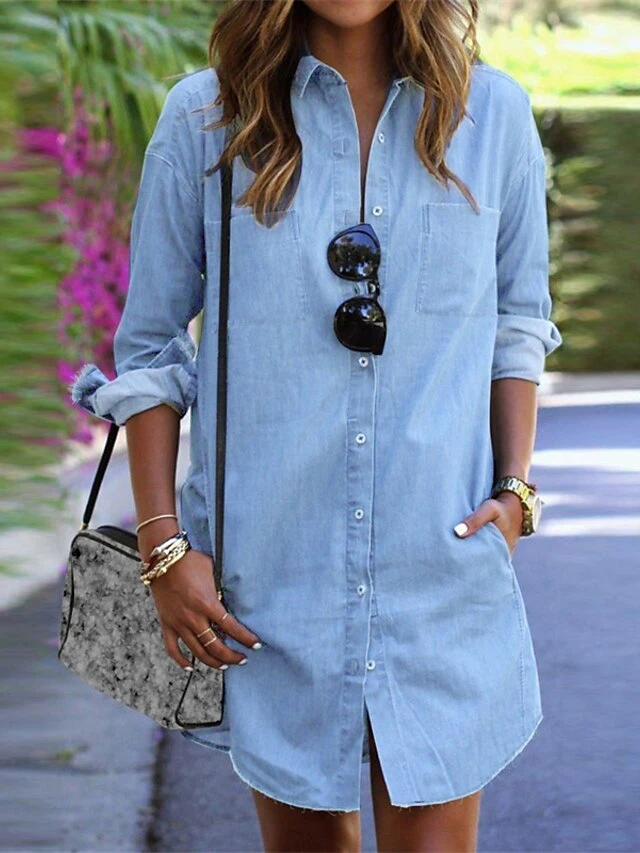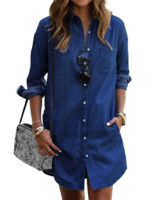 Women’s Denim Dress Shirt Dress Shift Dress Mini Dress Outdoor Winter Dress Daily Cotton Denim Casual Shirt Collar Button Pocket Long Sleeve Summer Spring Fall 2023 Regular Fit Black Army Green Dark