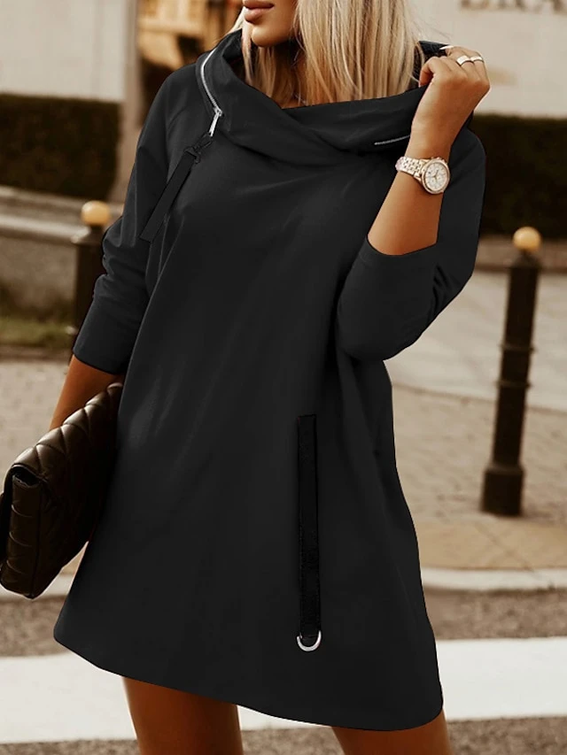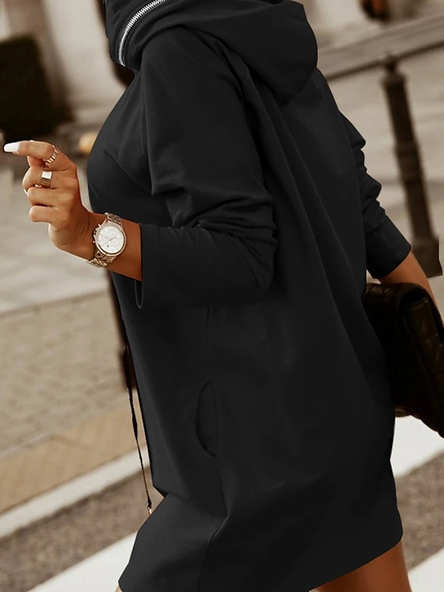 Women‘s Hoodie Dress Winter Dress Black Army Green Red Long Sleeve Pure Color Zipper Pocket Winter Fall Hooded Stylish Modern Mature Fall Dress 2022 S M L XL XXL 3XL 4XL 5XL