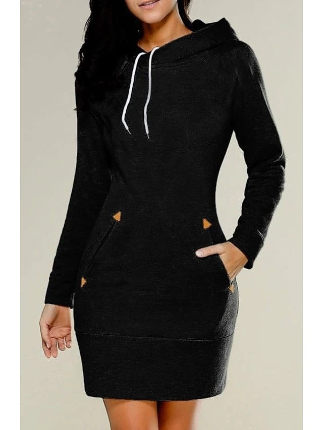 Women‘s Hoodie Dress Winter Dress Short Mini Dress ArmyGreen Black Red Wine Light Grey Dark Gray Long Sleeve Pure Color Pocket Fall Winter Hooded Basic Casual Modern Loose 2022 S M L XL 2XL 3XL 4XL