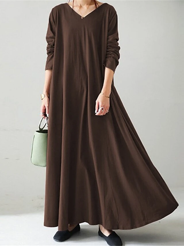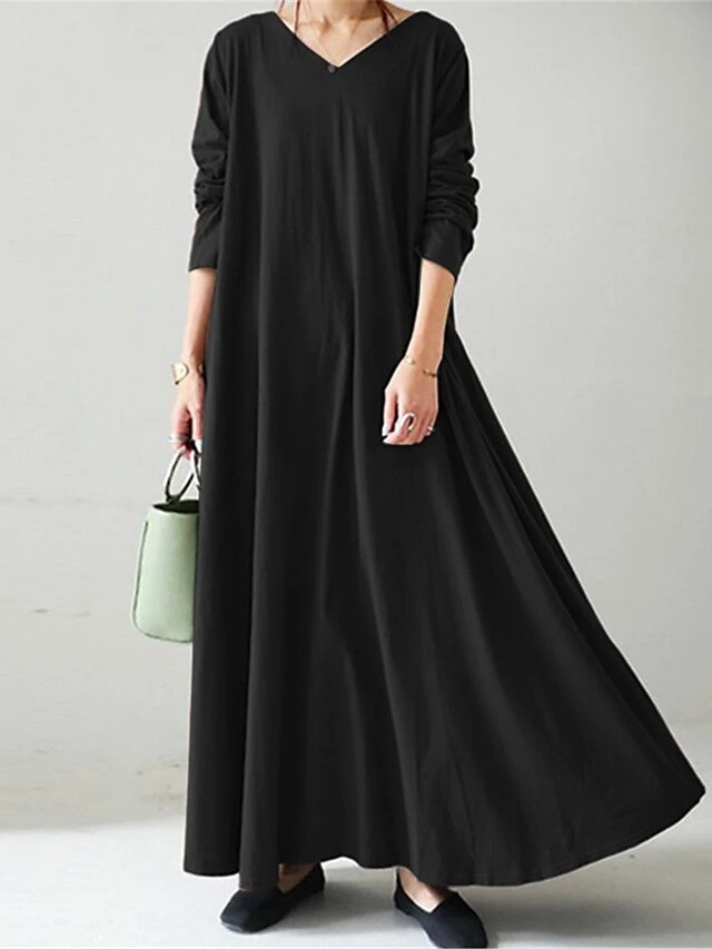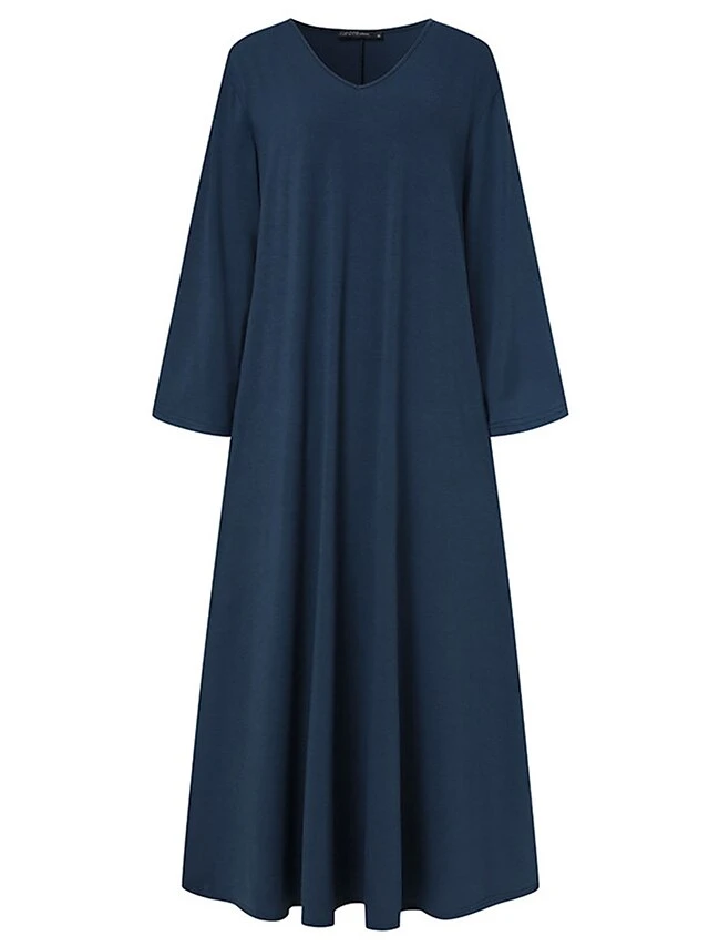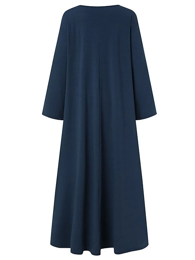 Women’s Long Dress Maxi Dress Casual Dress Shift Dress Swing Dress Pure Color Casual Classic Daily Weekend Pocket Long Sleeve V Neck Dress Loose Fit Black Yellow Navy Blue Winter Fall S M L XL XXL