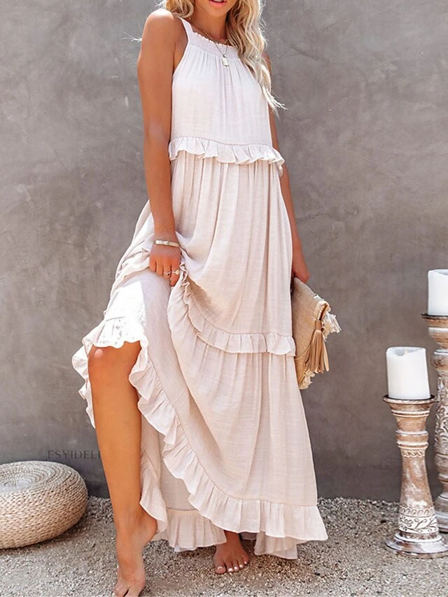 Women’s Long Dress Maxi Dress Casual Dress Swing Dress Summer Dress Pure Color Casual Daily Vacation Weekend Ruffle Pocket Sleeveless Crew Neck Dress Regular Fit White Yellow Pink Spring Summer S M L