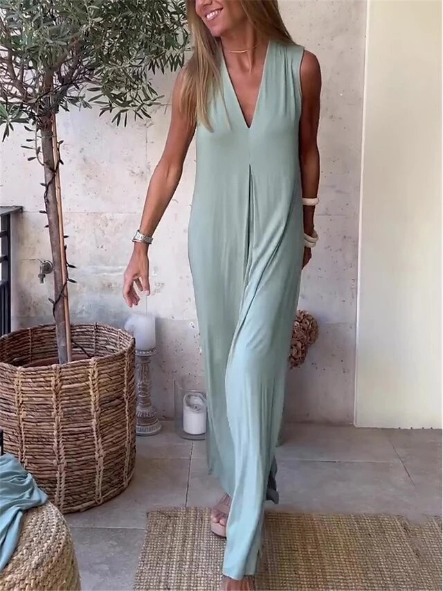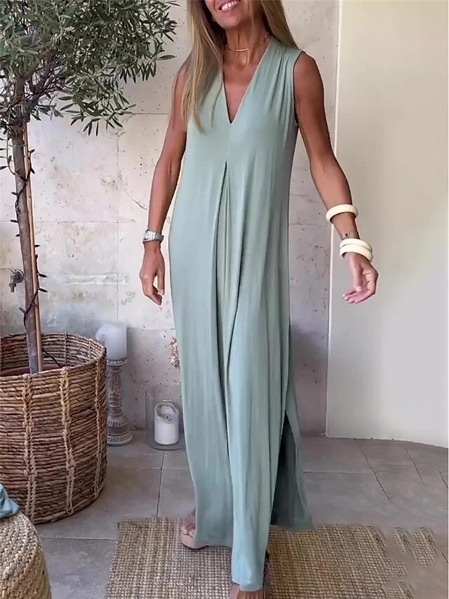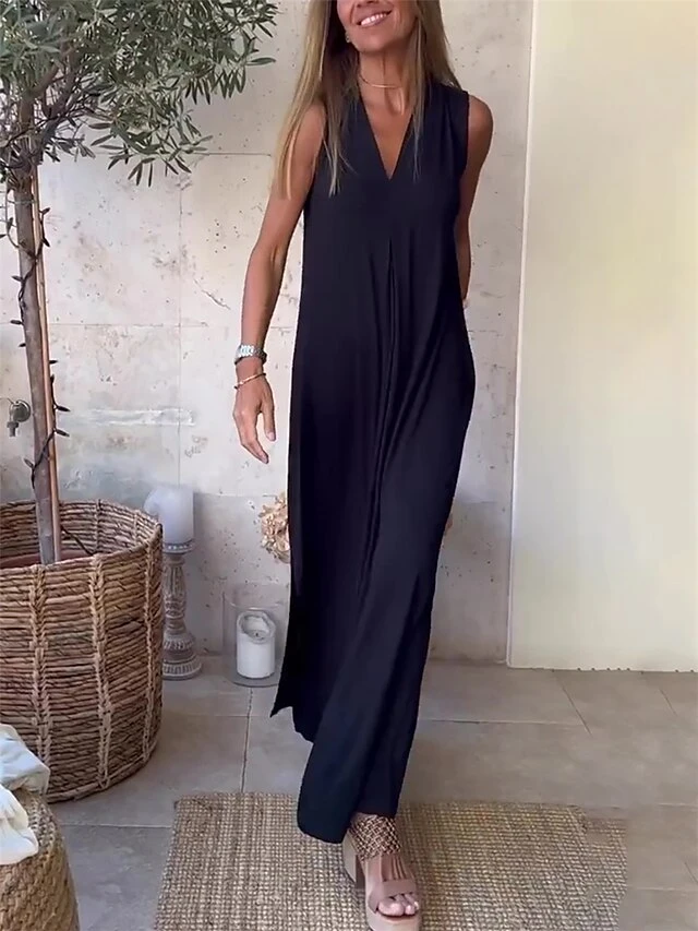 Women’s Long Dress Maxi Dress Casual Dress White Dress Tank Dress Plain Fashion Basic Outdoor Daily Holiday Split Sleeveless V Neck Dress Regular Fit Black White Navy Blue Summer Spring S M L XL XXL