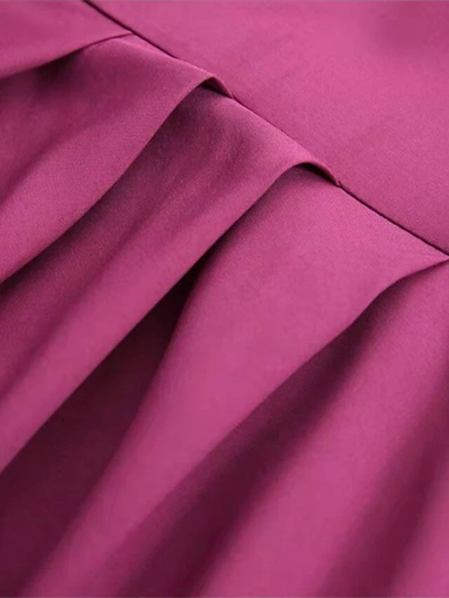 Women‘s Party Dress Work Dress A Line Dress Midi Dress Black Fuchsia Green Long Sleeve Pure Color Ruched Winter Fall Spring Crew Neck Fashion Winter Dress Office Daily 2023 S M L XL XXL 3XL