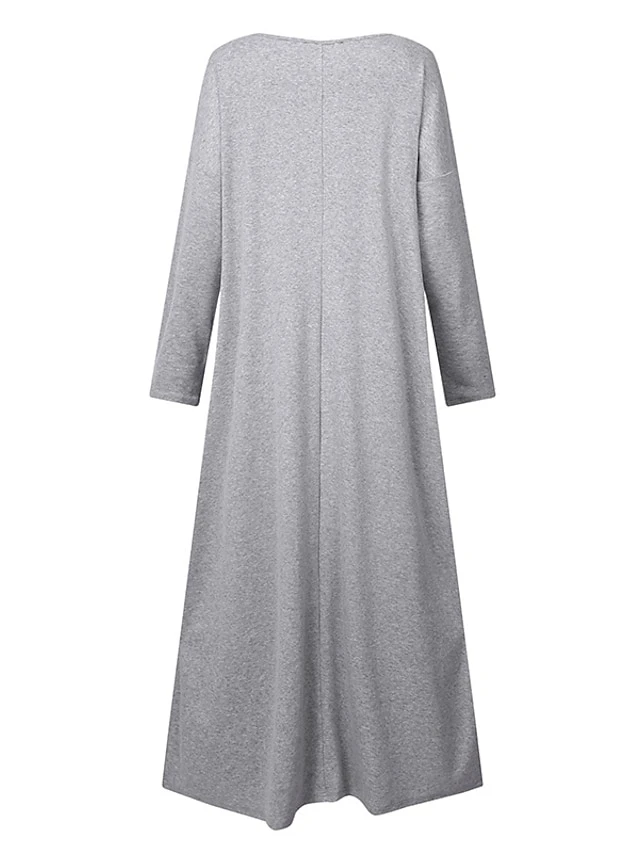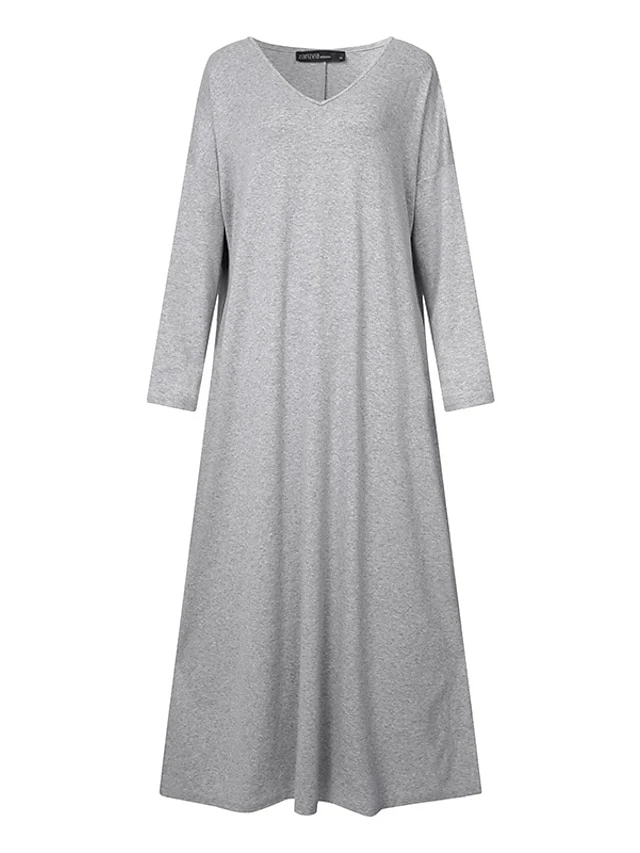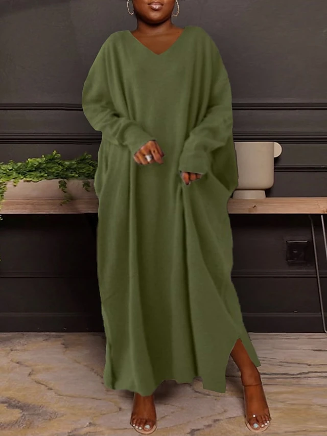 Women‘s Plus Size Casual Dress Caftan Dress Solid Color V Neck Long Sleeve Winter Fall Basic Casual Maxi Long Dress Daily Vacation Dress