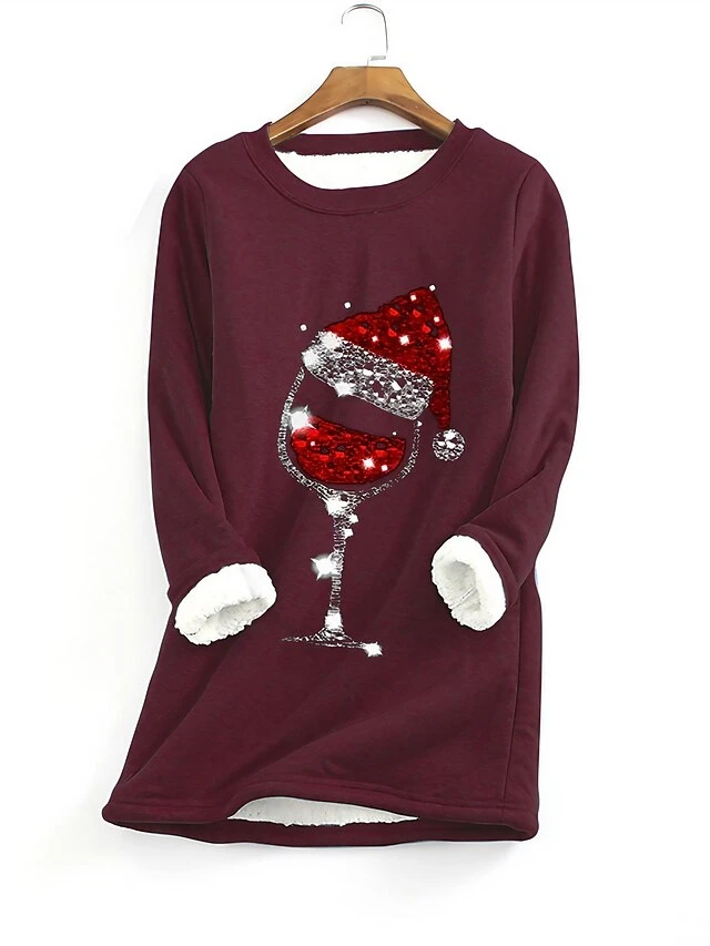Women‘s Plus Size Christmas Casual Dress Print Crew Neck Long Sleeve Winter Fall Casual Mini Dress Daily Dress / Hoodie Dress